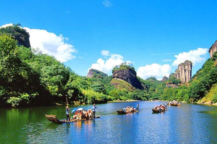 武夷山市位于福建省西北部、闽赣两省交界处,属中亚热带地区,是福建省唯一以名山命名的新兴旅游城市。武夷山风景秀丽,历史悠久,人文荟萃,素有“碧水丹山”之誉。境内拥有首批国家重点风景名胜区、国家重点自然保护区、国家森林公园、国家旅游度假区、城村古闽越王城遗址、全国重点文物保护单位、国家一类航空口岸。1998年7月,被评为中国首批优秀旅游城市; 1999年12月1日,被联合国教科文组织批准列入《世界文化与自然遗产名录》,总面积999.75平方公里,核心区面积635.75平方公里。成为我国第4处、世界23处世界文化与自然“双遗产”地之一。2007年5月,成为国家首批5a旅游景区。已逐步成为观光旅游、度假旅游、文化旅游、健康旅游、商务旅游的胜地。主要景点有:九曲竹筏漂流、天游峰、一线天、虎啸岩、水帘洞、大红袍、武夷宫等
